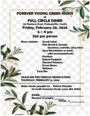 The Forever Young is a ministry for the senior citizens of St. George. Meetings are held each month and many varied activities are scheduled. Rides are provided for those who need them. If you are interested in learning more or would like to join the Forever Young, please contact the Church office 781-595-6162.